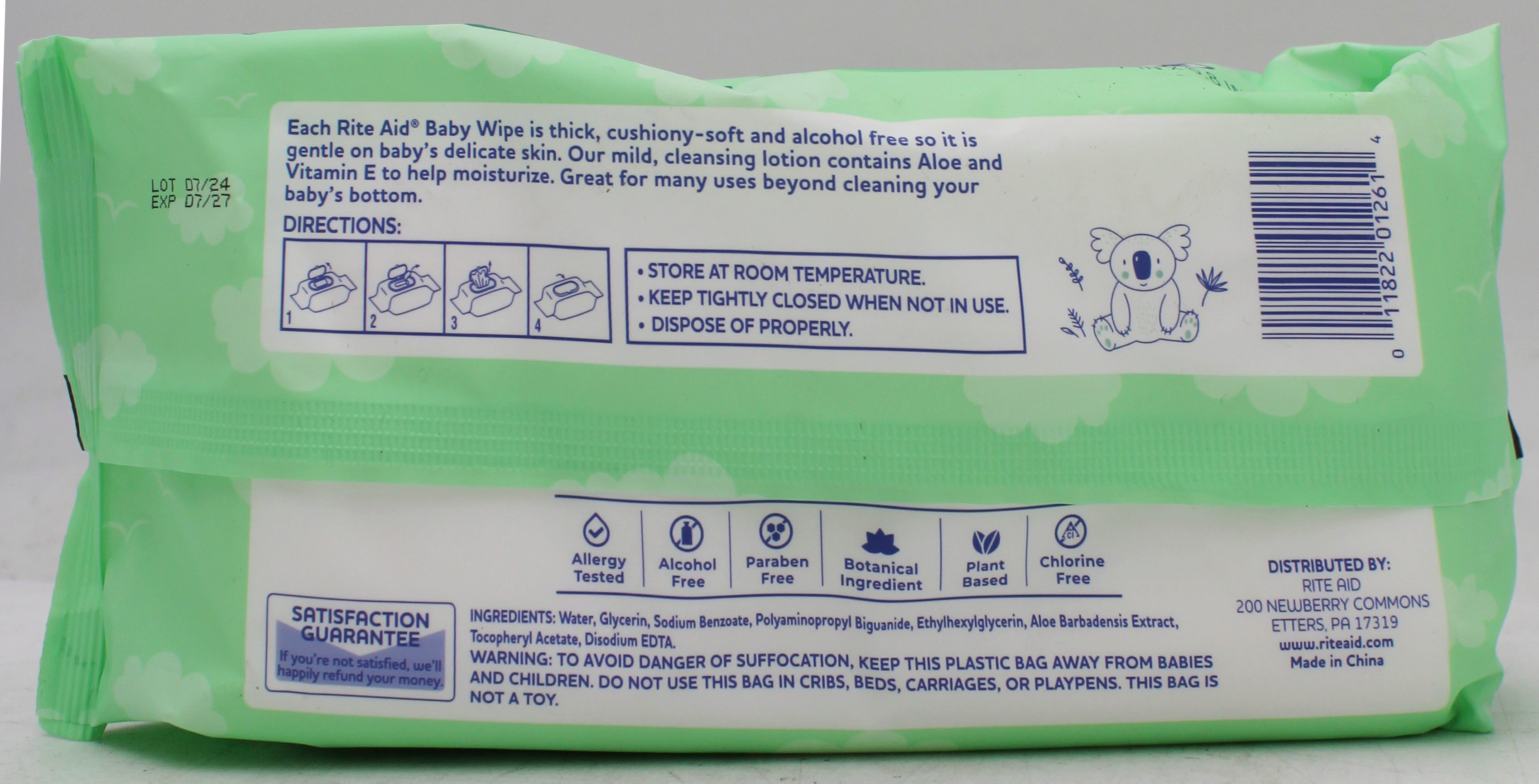 Rite aid baby wipes fragrance free 72ct exp 7/31/2027