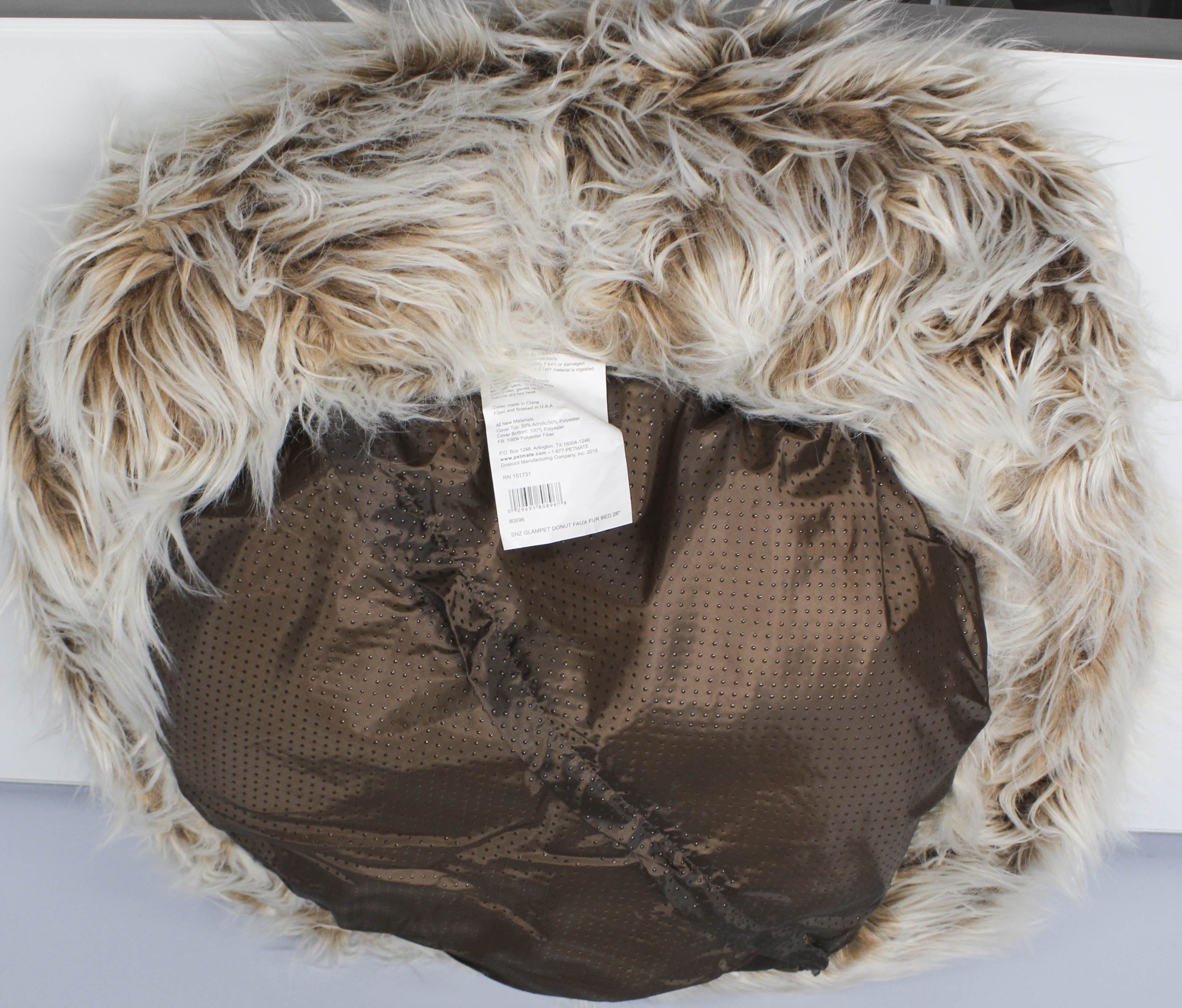 • SNOOZZY GLAM PET DONUT FAUX FUR PET BED 26"
