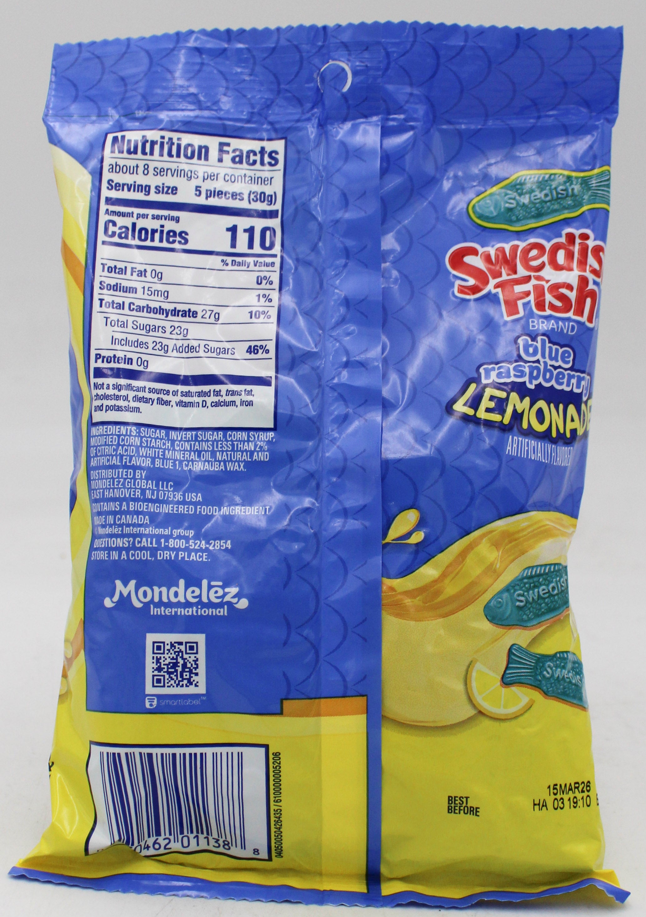 Swedish fish blue rasberry lemonade peg bag 8.04 oz bb 3/15/2026